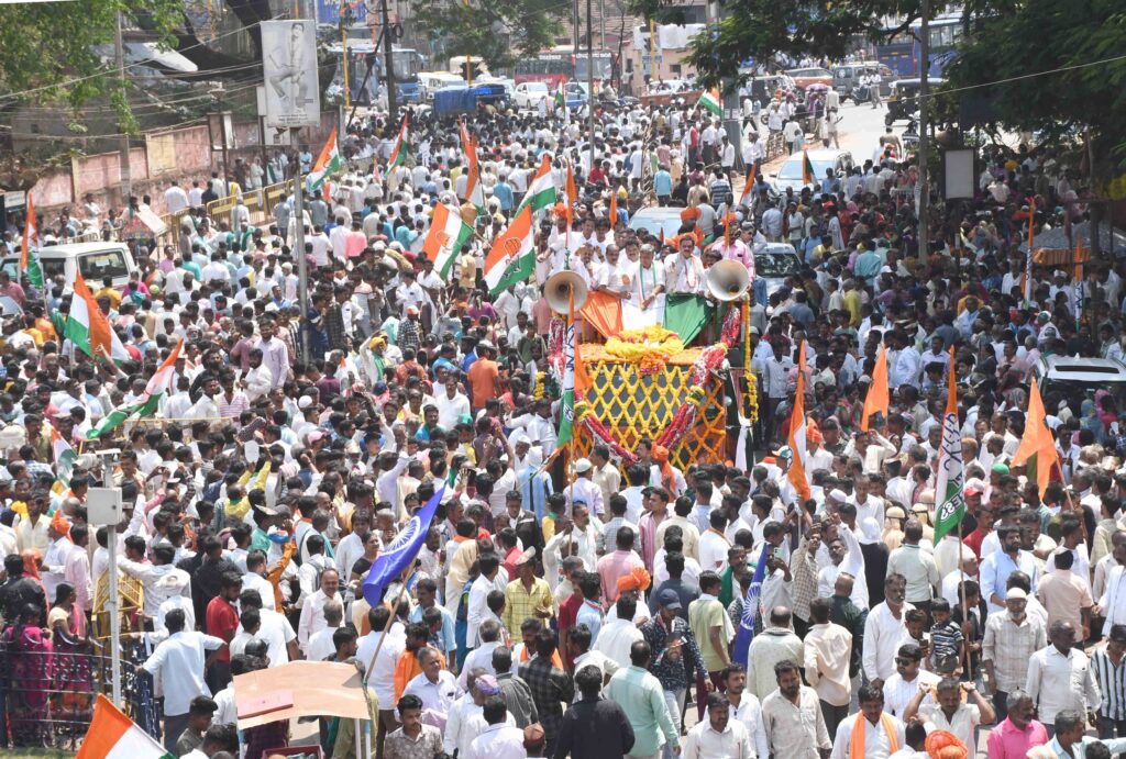 धारवाड़ के सवदत्ती रोड स्थित मुरुघामठ से कांग्रेस उम्मीदवार विनय कुलकर्णी की ओर से उनकी पत्नी शिवलीला कुलकर्णी पदयात्रा के जरिए उपविभागीय अधिकारी कार्यालय पहुंचकर नामांकन सौंपा। पूर्व मुख्यमंत्री जगदीश शेट्टर, विधायक लक्ष्मी हेब्बलकर, ब्लॉक कांग्रेस अध्यक्ष ईश्वर शिवल्ली, अरविंद ऐगनगौडर, नेता चनबसप्पा मट्टी, कल्लप्पा पुडकलकट्टी आदि ने साथ दिया। इस दौरान विनय कुलकर्णी जिंदाबाद के नारों से सडक़ें गुंज उठीं।